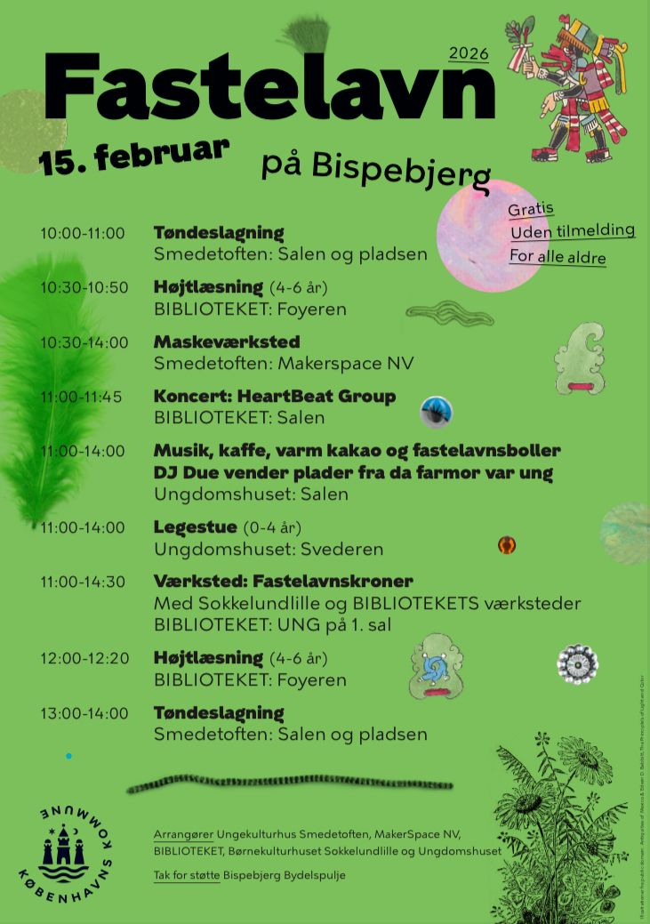 Fastelavnsfesten er arrangeret i samarbejde mellem BIBLIOTEKETs værksteder, Børnekulturhuset Sokkelundlille, Ungekulturhus Smedetoften, MakerSpace NV og Ungdomshuset.