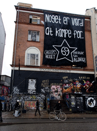 Ungdomshuset er opstået af Nørrebro-kulturen og hører til her.